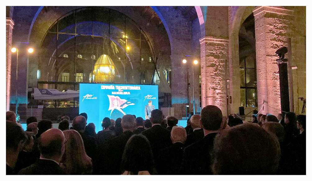 Jorge Vega Penichet destacó la elección de la capital catalana para esta celebración. “Barcelona es la ciudad fundacional de Compañía Trasmediterránea” y destacó que el Centenario “es un acontecimiento del que nos sentimos especialmente orgullosos, por varios motivos. El primero y principal porque esta empresa forma parte de la historia contemporánea de España y, en concreto, la historia de la Marina mercante. La construcción naval española en estos últimos cien años no puede entenderse en toda su amplitud sin el destacado protagonismo de Trasmediterránea.”