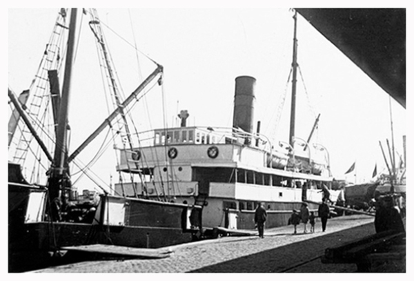 El vapor Canalejas en el dique flotante y deponente del puerto de Barcelona.