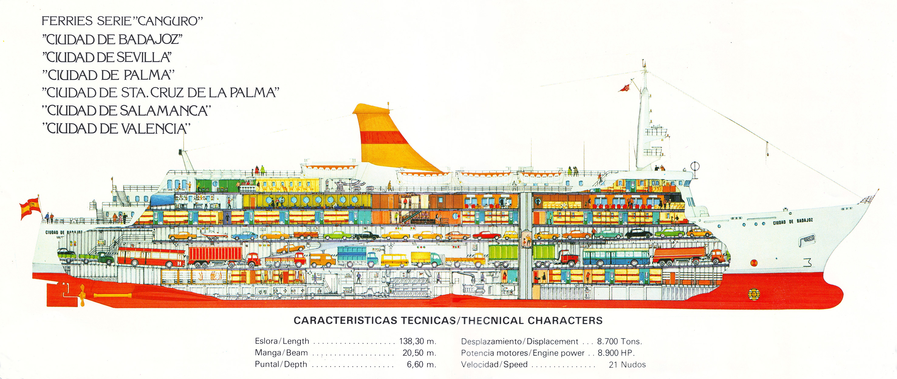 en manos del grupo italiano Bastogi. Con esta base, el 23 de febrero de 1968, se inauguró la Línea de Canguros servida por ferries italianos y que realizaban la línea Barcelona-Génova.