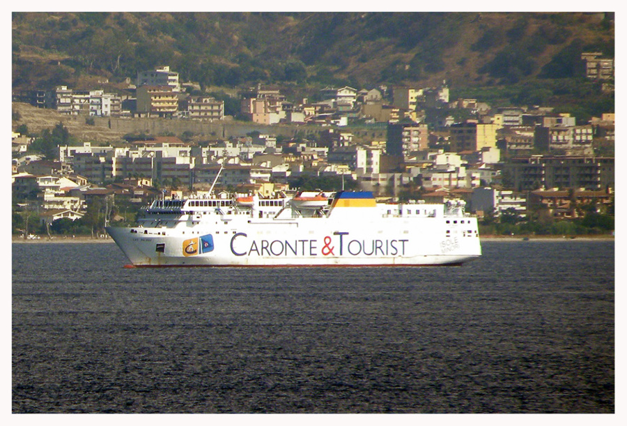 El ferry Las Palmas de Gran Canaria navegando en el estrecho de Messina el 26 de