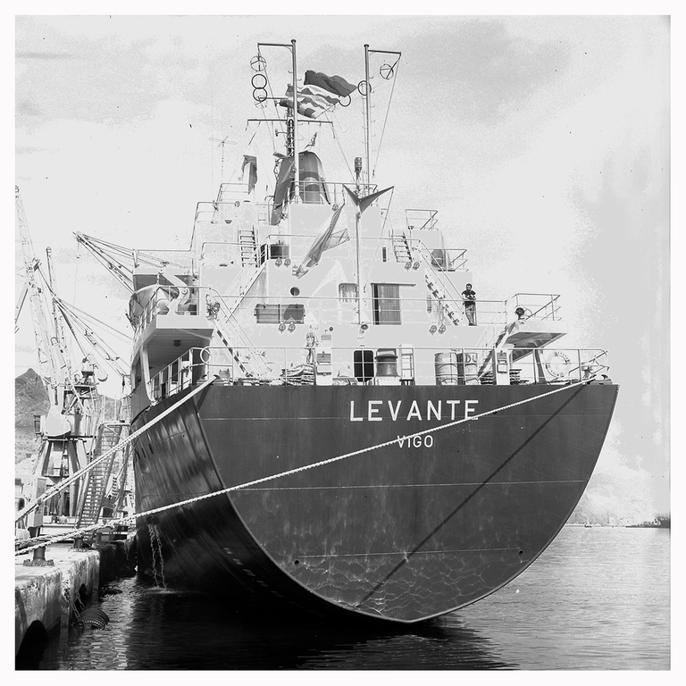 El buque Levante tomado por su aleta de estribor.