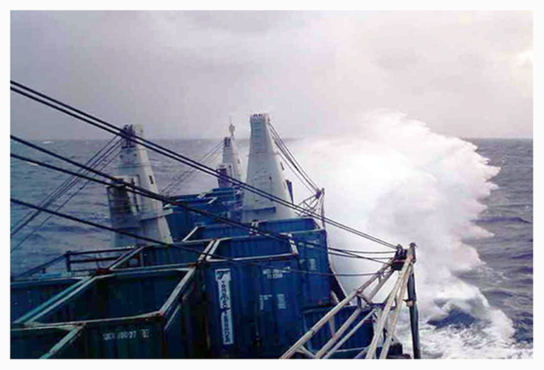 El buque Levante navegando con mal tiempo.