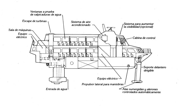 principal, uno de los aspectos más novedosos fue la instalación de un panel digital, en el que se podía apreciar, en cualquier momento, la velocidad a la que navegaba el jetfoil, y que en el caso del