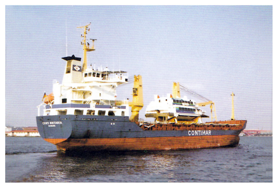 El 26 de agosto de 1990 el buque Conti Britannia zarpa de Kobe transportando al jetfoil Princesa Dácil sobre su cubierta.