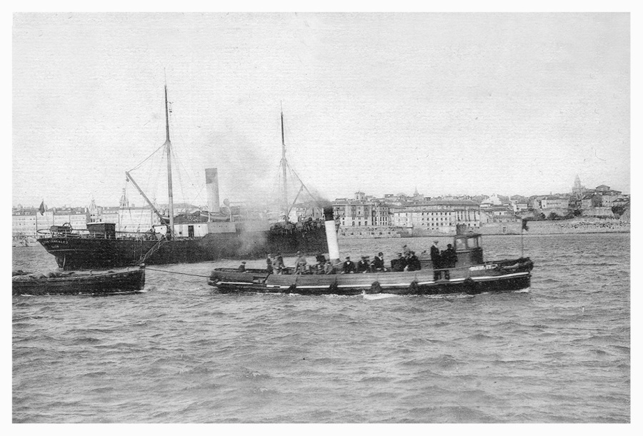 El vapor Melitón González en aguas del puerto de La Coruña.
