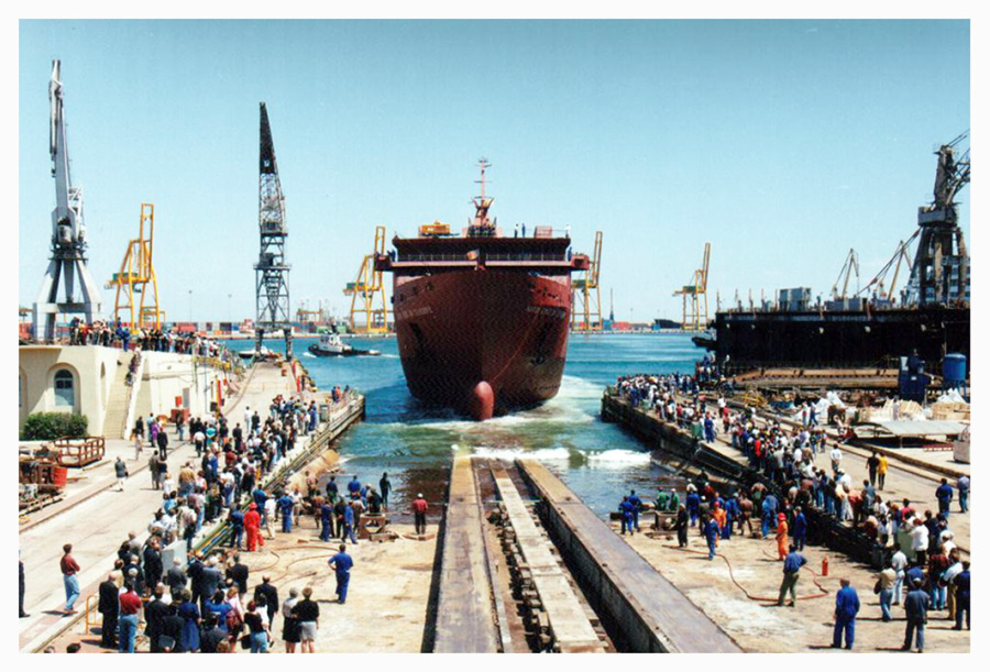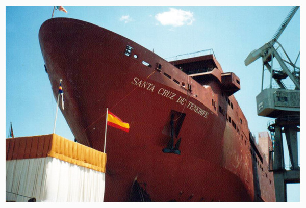 1993, en una ceremonia que amadrinó la señora María Luisa Hernández, esposa de Fernando Abril Martorell, ex ministro y presidente de Unión Naval de Levante. Entre los invitados a la botadura se