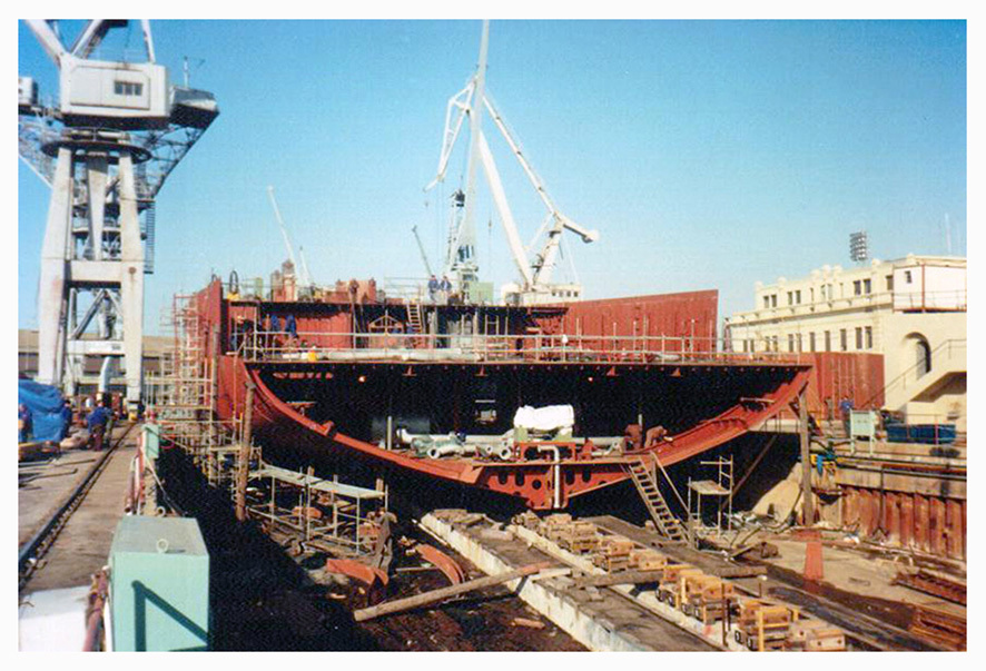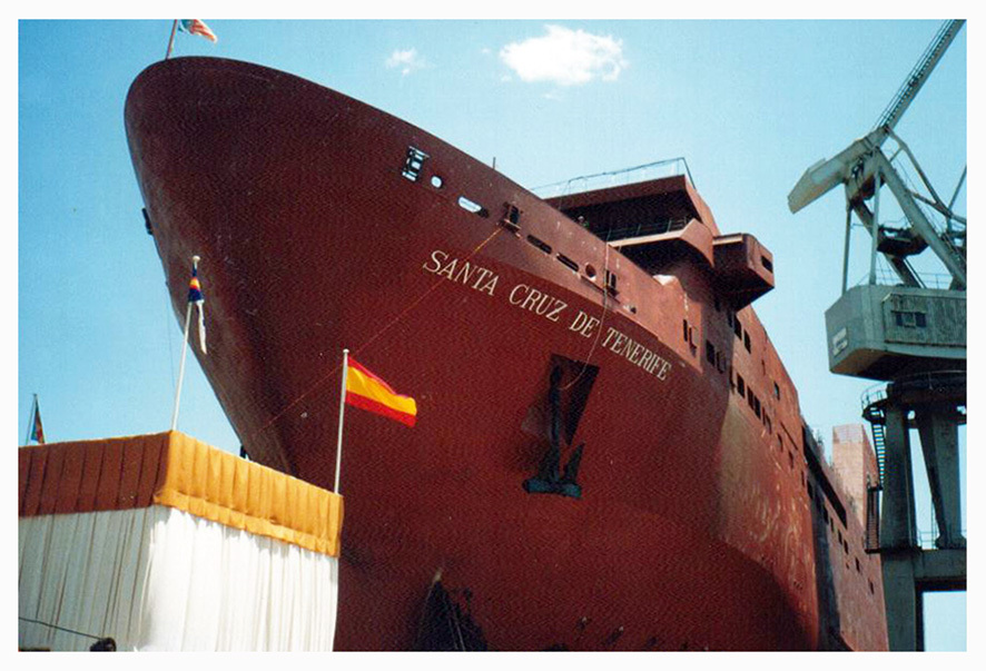 Puesta en grada del primer bloque del ferry Santa Cruz de Tenerife el 30 de abril de 1992.