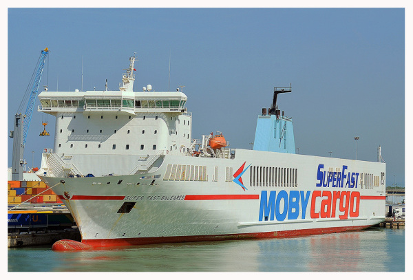 Para sustituir la baja provisional del buque Eurocargo Trieste (ex Super-Fast Andalucía), después de que sufriera un incendio en la sala de máquinas cuando se encontraba a unas cuatro millas del puerto de Livorno, en diciembre de 2019 Grimaldi fletó el rolón Super-Fast Baleares para cubrir la línea semanal Livorno-Savona-Barcelona y Valencia con carga rodada.
