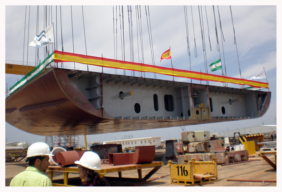 Colocación del primer bloque de la quilla del buque José María Entrecanales, el 7 de mayo de 2008.
