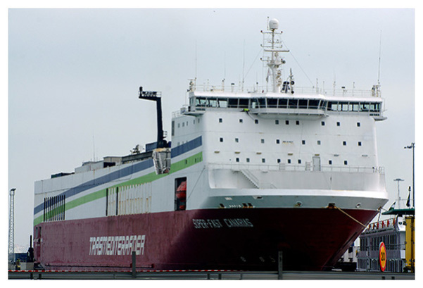El buque Ro-Ro Brabant tomado por su amura de babor