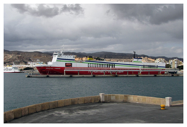 Atracado en el puerto de Almeria el 4 de marzo de 2011, junto al fast-ferry Alcántara.