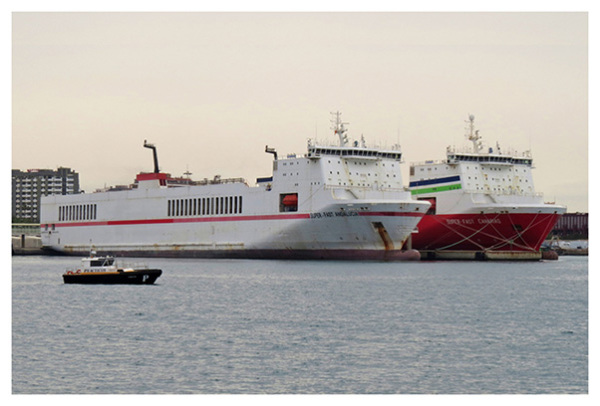 de mayo de 2015 rumbo a Nápoles, y el Super-Fast Canarias permanece a la espera de su traslado.