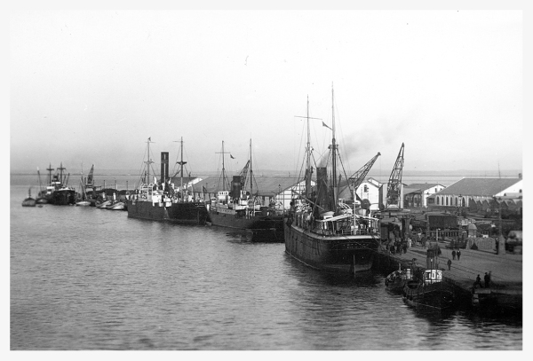 El vapor Tordera con algunos compañeros de flota entre los que se identifican los buques J.J. Sister