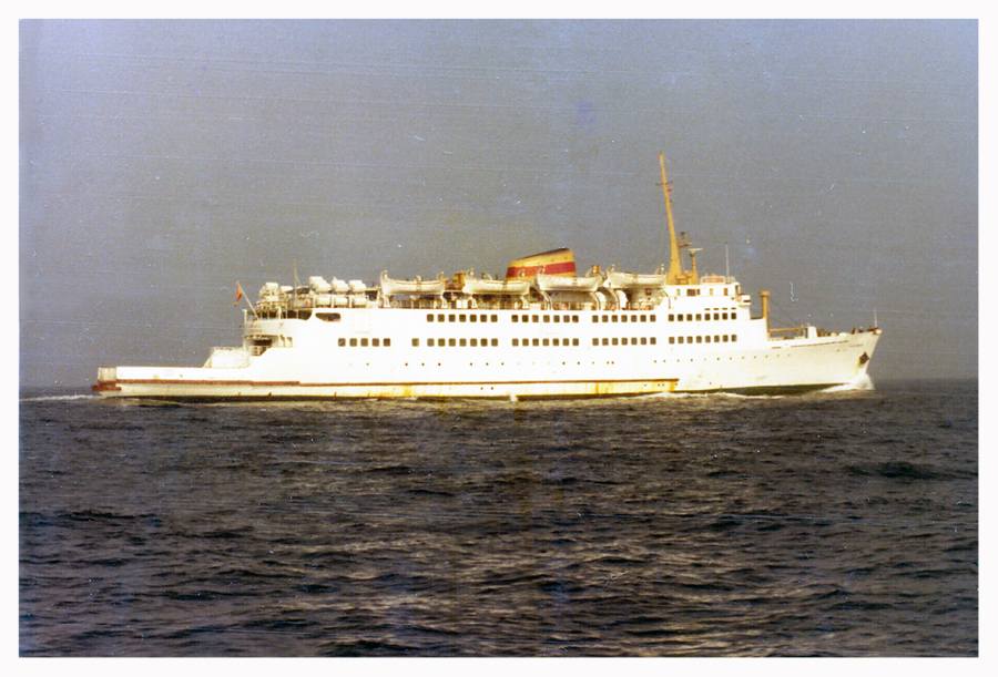 Saliendo del puerto de Málaga cubriendo la línea Málaga-Tánger inaugurada en diciembre de 1964.