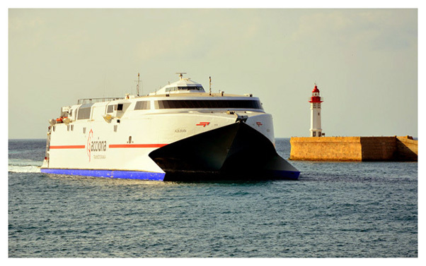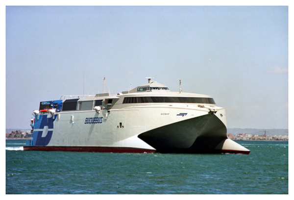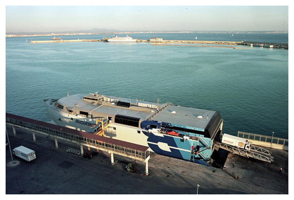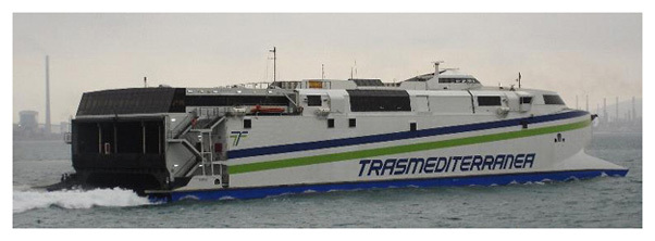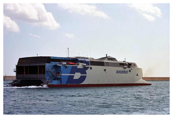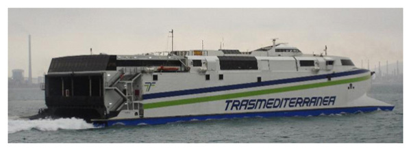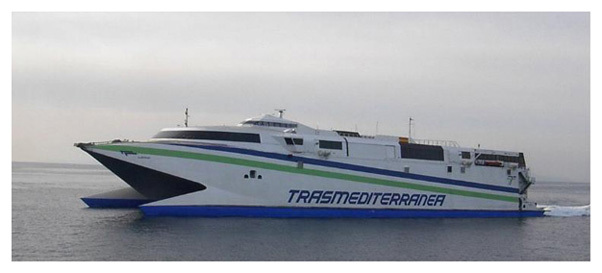 Barcelona el recién adquirido catamarán de alta velocidad Catalonia. La implantación de este servicio fue un duro golpe competitivo para la Compañía Trasmediterránea ya que realmente
