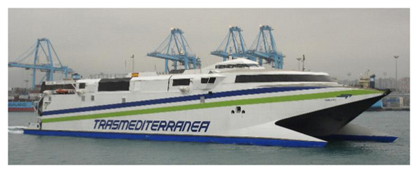 El catamarán "Alborán" bajo la contraseña de Acciona-Trasmediterránea